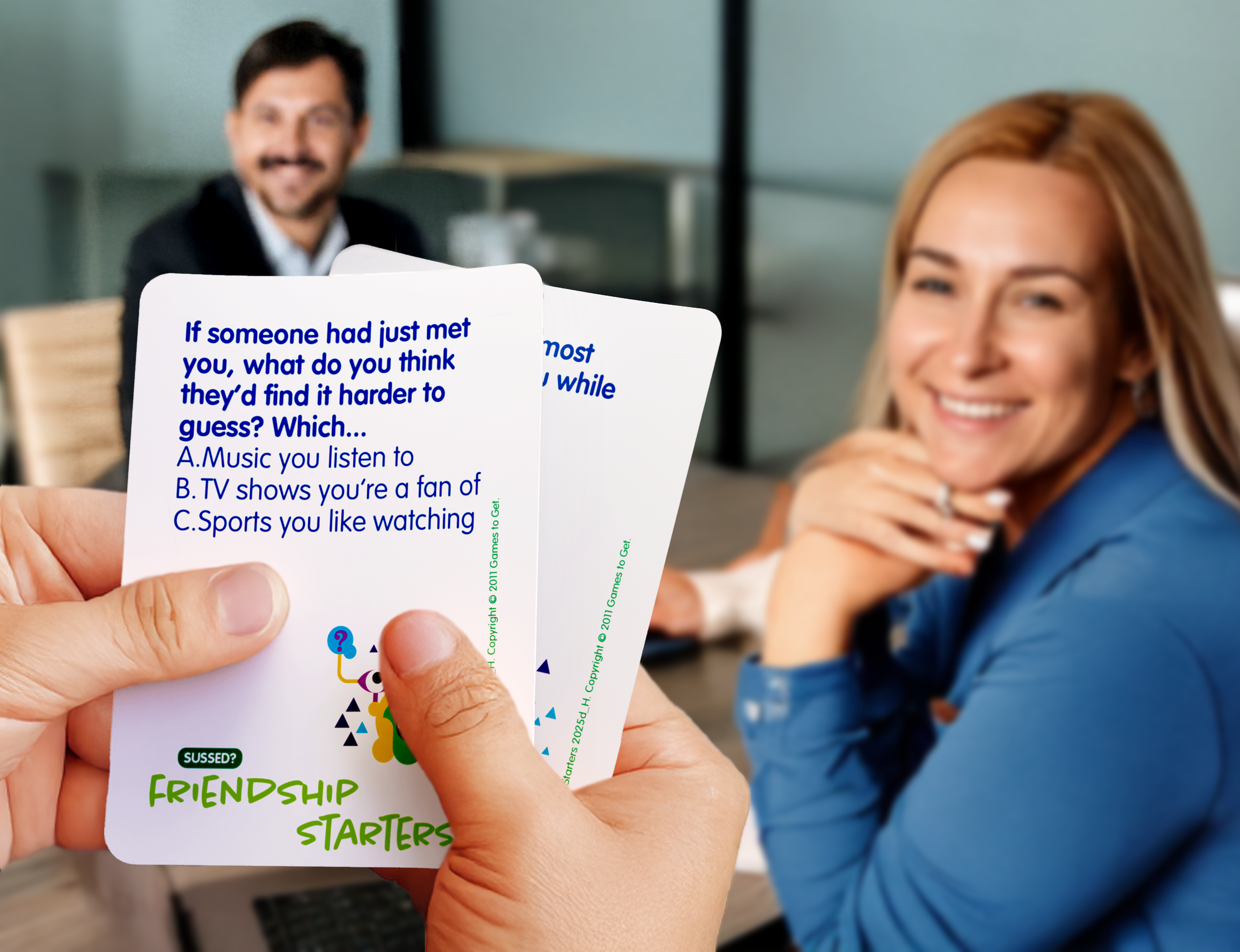 Friendship Starters™ for Coworkers can be used for team development and team bonding. Good for video calls or in person!